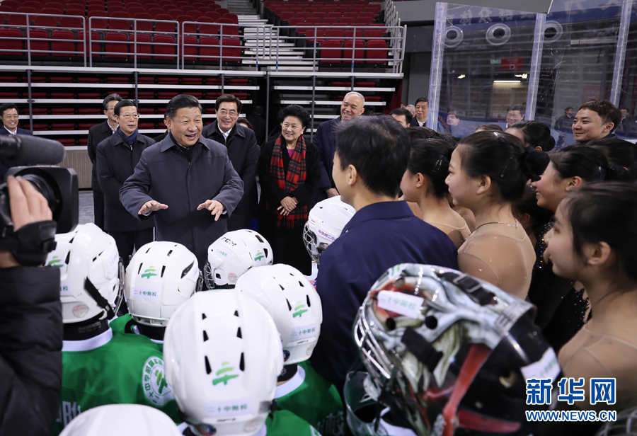 首都体育馆承担北京冬奥会短道速滑和花样滑冰比赛项目。习近平了解冰雪运动项目设置、体育馆改造规划,视察比赛场地、观看国家短道速滑队和花样滑冰队训练,到训练场边同教练员和运动员交流。国家花样滑冰队双人滑主教练赵宏博向总书记介绍刚参加完日本札幌第八届亚冬会比赛回国的运动员,习近平同他们一一握手,听他们讲述参赛感受。在同亚冬会500米短道速滑金牌获得者武大靖握手时,习近平说你的比赛我在电视上看了,很精彩。习近平强调,少年强中国强,体育强中国强,推动我国体育事业不断发展是中华民族伟大复兴事业的重要组成部分。他希望运动员们刻苦训练,不断提高技战术水平,多为祖国争荣誉、为人生添光彩。在总书记同教练员和运动员合影时,大家齐声喊:中国队加油!