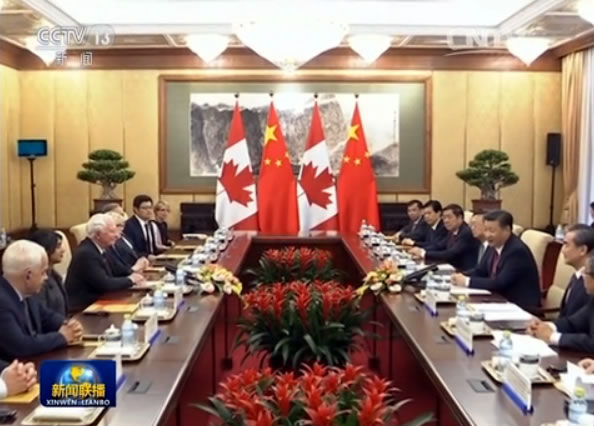 习近平指出,中加两国都是亚太地区重要国家,在实现各自国家发展、应对全球性挑战方面,拥有重要共同利益和广阔合作空间。近年来,中加关系总体保持良好发展势头,为两国人民带来实实在在的利益,也促进了亚太地区乃至世界和平、稳定、繁荣。中方愿同加方保持高层交往,用好各层级对话机制,扩大政府部门、立法机构、政党之间和各界的交流。双方要始终从战略高度和长远角度出发,尊重彼此核心利益和重大关切,一道努力,推动中加战略伙伴关系不断向前发展。