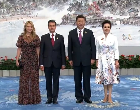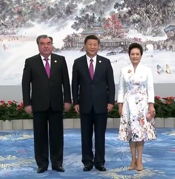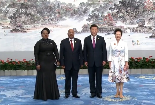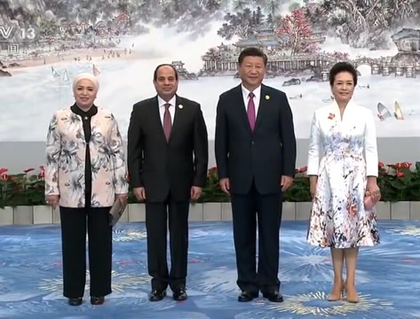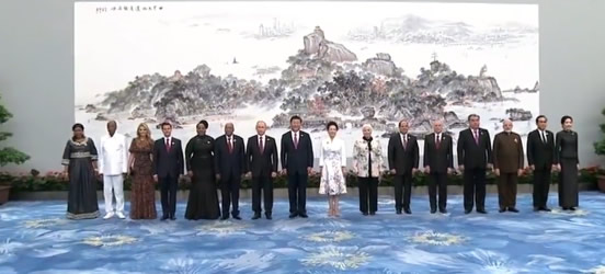 习近平主席夫妇迎接金砖国家和对话会受邀国领导人夫妇并集体合影
