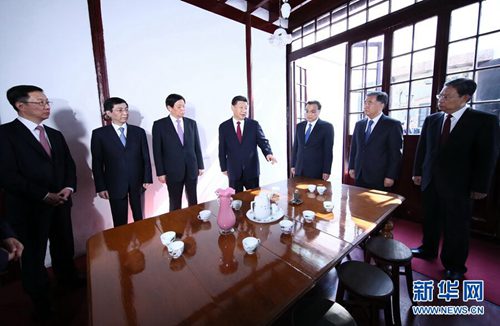 31日上午,习近平等一下飞机,就来到位于上海市兴业路76号的中共一大会址。这座饱经沧桑的石库门建筑,1952年9月修复并对外开放,在繁华的现代化都市中庄严肃穆。96年前,1921年7月,中国共产党第一次全国代表大会在这里举行,会议的主要议程是成立中国共产党。