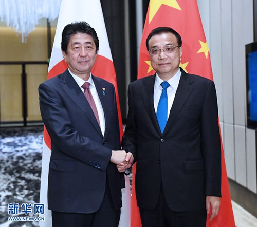 新华社马尼拉11月13日电(记者许可 杨柯)国务院总理李克强当地时间13日下午在马尼拉下榻饭店会见日本首相安倍晋三。