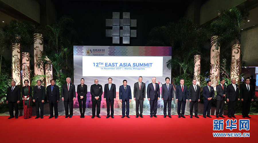 新华社马尼拉11月14日电(记者许可 许林贵)国务院总理李克强当地时间11月14日下午在菲律宾国际会议中心出席第12届东亚峰会,东盟十国领导人以及韩国总统文在寅、俄罗斯总理梅德韦杰夫、日本首相安倍晋三、印度总理莫迪、澳大利亚总理特恩布尔、新西兰总理阿德恩、美国国务卿蒂勒森等出席。菲律宾总统杜特尔特主持会议。