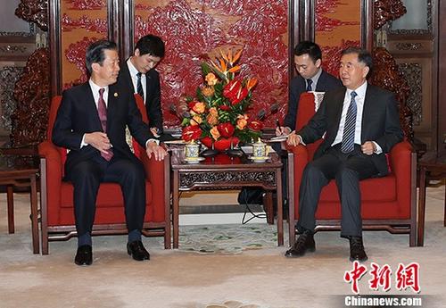 12月1日,中共中央政治局常委、国务院副总理汪洋在北京中南海紫光阁会见了美中关系全国委员会理事会主席、前美国贸易代表希尔斯为团长的美中关系全国委员会代表团。中新社记者 毛建军 摄