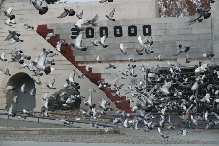 12月13日,南京大屠杀死难者国家公祭仪式现场放飞和平鸽。新华社记者 季春鹏 摄