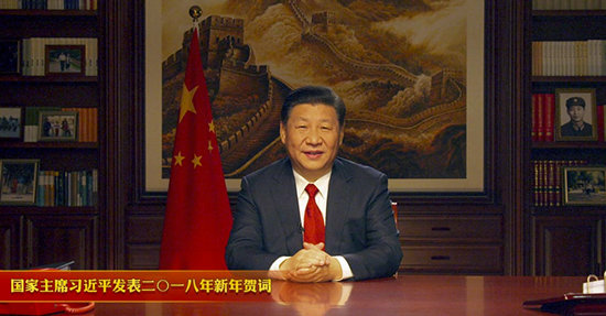 央视网消息:2018新年的钟声即将敲响之际,国家主席习近平一年一度的新年贺词如期而至。这是习近平就任国家主席后,第五次发表新年贺词,也是中国特色社会主义进入新时代后第一篇新年贺词。
