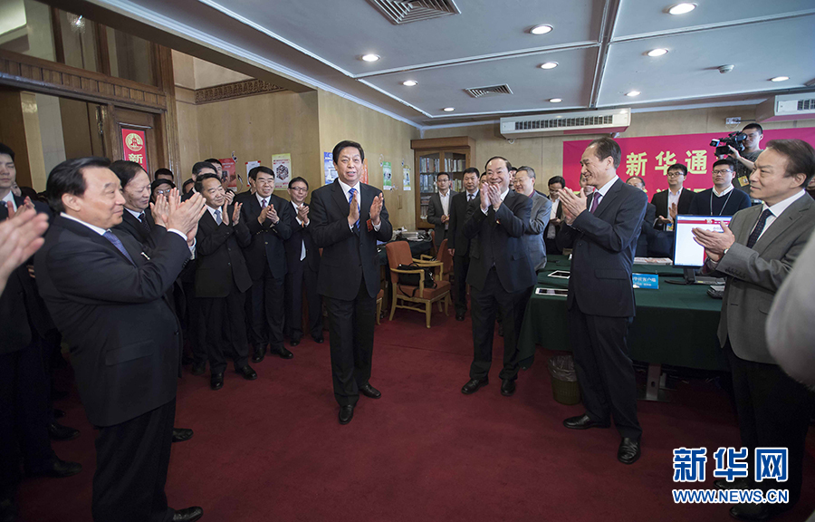 3月19日,中共中央政治局常委、全国人大常委会委员长栗战书在北京人民大会堂看望参加十三届全国人大一次会议新闻报道工作的中央主要媒体负责人和工作人员。新华社记者 李涛 摄