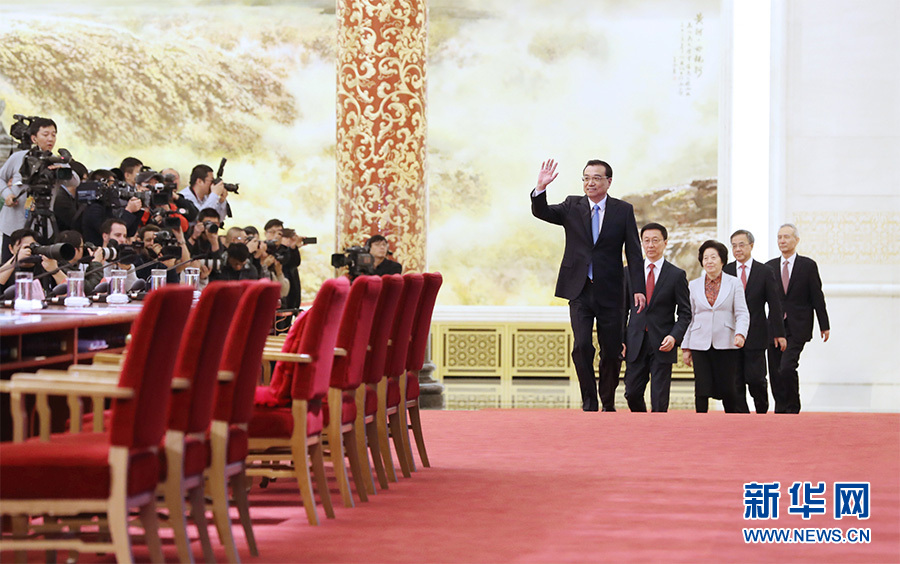 李克强总理向中外记者介绍了各位副总理,并对大家表示感谢,欢迎大家提问。