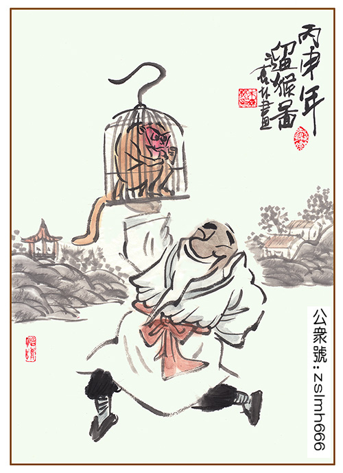 丙申年遛猴图