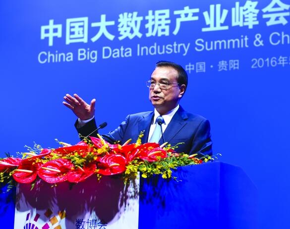 图为5月25日,中共中央政治局常委、国务院总理李克强在贵阳出席中国大数据产业峰会暨中国电子商务创新发展峰会开幕式并致辞
