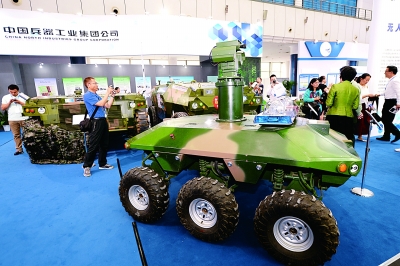 观众在中国科协年会军民融合科技创新展览会中国兵器工业集团公司展位参观。新华社发