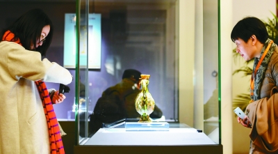 观众在参观“盛世·和平——‘一带一路’下的唐代文物”展。新华社发