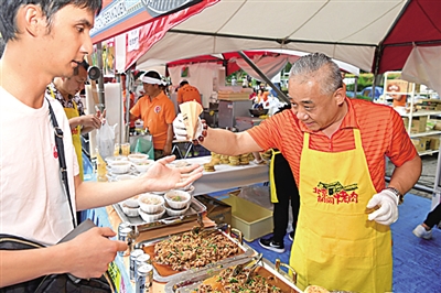 9月21日,为期两天的“2019中国节”活动在日本东京代代木公园开幕。“2019中国节”会场共设置100余个展位,包含中国各地美食、物产、文化展示等丰富多彩的内容。图为游客在活动中购买中国美食。新华社发