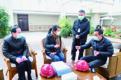 在杭州市余杭区一家企业内,当地政府工作人员正在与企业主进行复工对接,了解企业的疫情防控情况并帮助解决员工上下班的通勤问题。新华社发