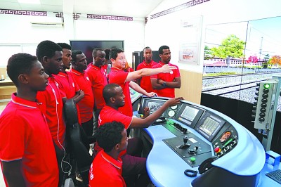 天津参与建设吉布提鲁班工坊。图为列车模拟驾驶教学现场。光明图片