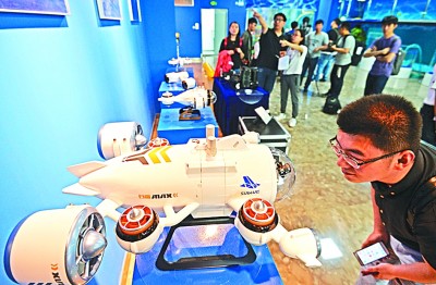 天津深之蓝海洋设备科技有限公司水下无人机亮相世界智能大会。光明图片