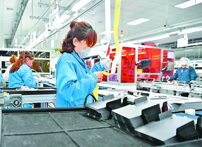 工人在位于陕西咸阳的冠捷科技公司工作。新华社发