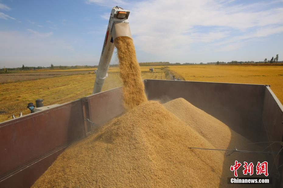 金秋九月,素有“稻米之乡”美称的新疆察布查尔县各乡村的水稻陆续成熟、稻谷飘香,随处可见稻农收割、运输、晾晒水稻的忙碌丰收场景。华岩明 摄 图片来源:中新网