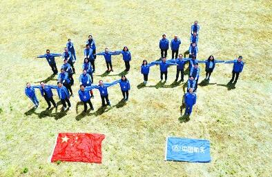 航天科技“北斗”团队入选“最美奋斗者”:图为团队部分成员摆出“北斗”两字的造型。 新华社发