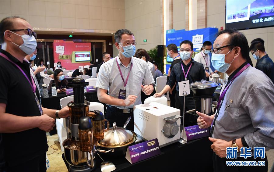 在第128届网上广交会的线下双循环贸易促进活动上,企业代表和采购代表洽谈业务(10月16日摄)。新华社记者 邓华 摄