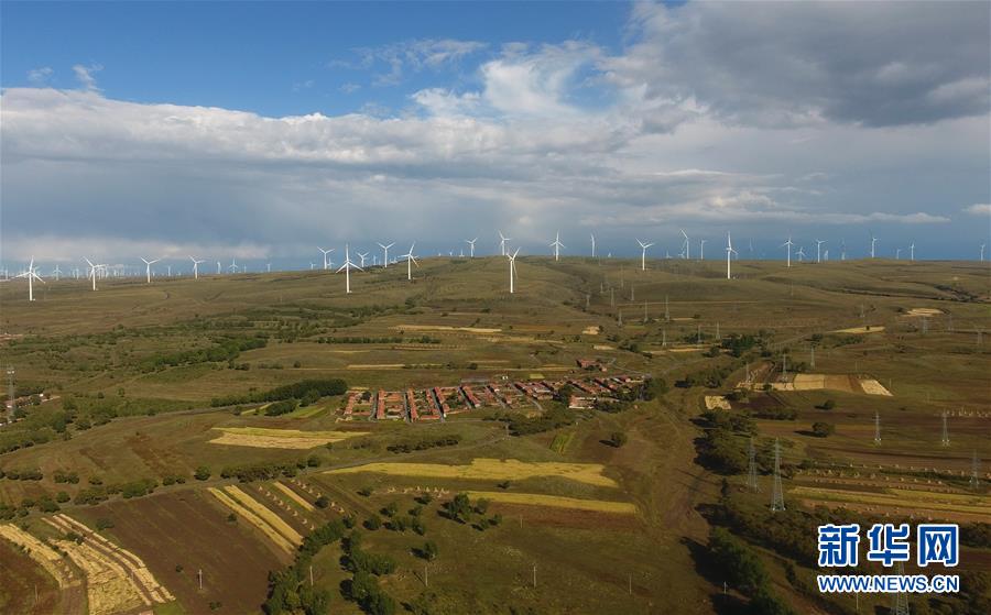 9月坝上,蓝天、草原、旋转的巨大“风车”相互映衬。这里是国家规划的9个千万千瓦级风电基地之一,将助力北京冬奥会成为“绿色冬奥”。