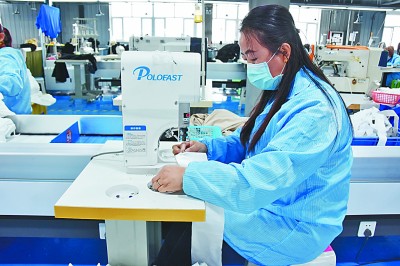 工人在宁夏海原县闽宁纺织工业园的扶贫车间里工作。新华社发