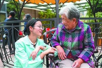 实施积极应对人口老龄化国家战略,事关国家发展全局,事关百姓福祉。云南昆明官渡区养老综合服务示范中心护理部工作人员陪老人聊天。新华社发