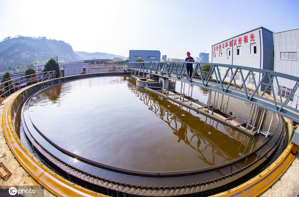 2020年11月30日,江西省九江市湖口县高新技术产业园区内每日处理20000立方米的污水处理厂正在有序运行,工作人员正在进行日常巡护。图片来源:ICphoto