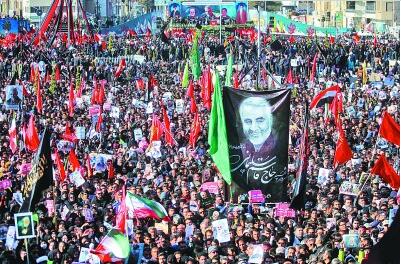 1月7日,在伊朗克尔曼市,人们参加伊朗指挥官苏莱曼尼的葬礼。新华社发