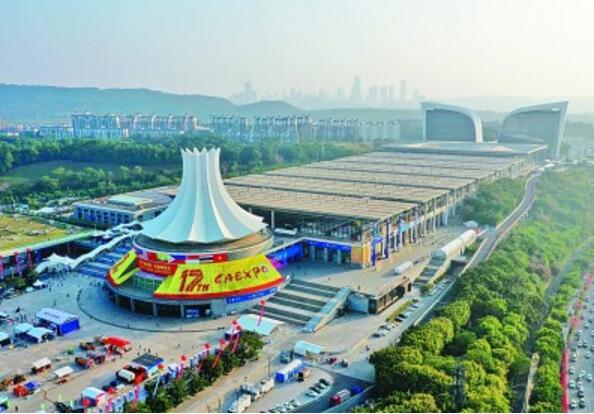 11月30日,为期4天的第17届中国-东盟博览会、中国-东盟商务与投资峰会在广西南宁闭幕。图为南宁国际会展中心及周边建筑。新华社发