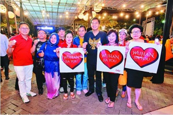 2月21日,在印度尼西亚首都雅加达,数百名当地各界人士参加为中国抗击新冠肺炎疫情祈福活动。新华社发
