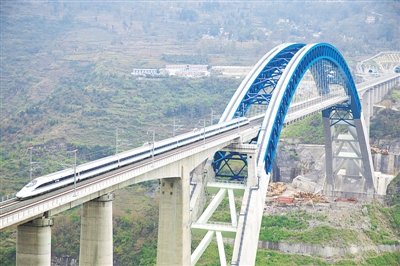 党的十八大以来,中国共产党高举改革开放伟大旗帜,以党的伟大自我革命推动党领导人民进行的伟大社会革命,取得了举世瞩目的成就。图为一辆试验列车驶过成贵高铁鸭池河特大桥。新华社发习近平总书记指出:“要把新时代坚持和发展中国特色社会主义这场伟大社会革命进行好,我们党必须勇于进行自我革命