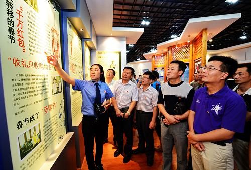 7月5日,讲解员在武夷山市反腐倡廉警示教育基地向党员干部介绍典型案例。新华社记者 张国俊 摄