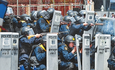 德新社报道,手持盾牌、警棍和催泪瓦斯的防暴警察当天被派往数个反政府集会地,包括位于曼谷北部的泰国国家石油全球化工公司总部,位于市中心的总理府,曼谷北部另一处政府办公区和内政部。