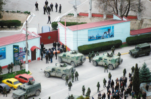 3月1日,在乌克兰克里米亚自治共和国塞瓦斯托波尔,不明身份的武装人员包围一个乌克兰边防哨所