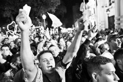 图为在委内瑞拉首都加拉加斯的玻利瓦尔广场,总统马杜罗的支持者在全国市政选举初步计票结果公布后欢呼庆祝(资料照片)。 □新华社发