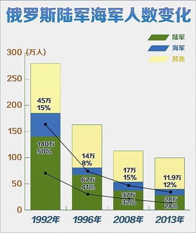 自1992年建军以来,俄罗斯军队经历了一场涉及国防领导管理体制、作战指挥体制、军队动员与补充体制、军兵种与部队结构、后勤保障体制、军事教育和训练体制的深刻变革。经过这场脱胎换骨式的军事改革,俄军初步完成了由“大战动员型”军队向“机动常备型”军队的转变。在军队这一复杂系统中,人力无疑是战斗力生成的基础。经过改革,俄军兵员数量、人员构成、官兵结构发生了巨大变化,这三个方面,也为我们解析俄军改革提供了特别的观察视角。