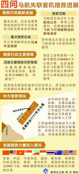 2014年3月11日,马来西亚航空公司MH370航班失联进入第四天。失联客机的有关信息仍然没有被搜获。部分失联乘客家属抵达吉隆坡,一些事实正进一步被澄清。“不放过一条线索、不放过一个角落”,更多国际搜救力量从海洋扩展到陆地。