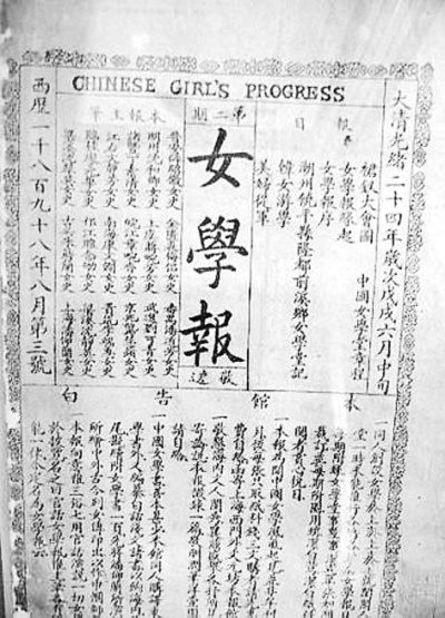 “最近奋激之现象,为前古所无者,莫如女界”,晚清妇女解放运动的发展有目共睹。传教士林乐知创办了中西女塾,康有为建立了“不缠足会”,一些知识妇女创办了《女学报》并成立了妇女社团组织——中国女学会等。1898年8月,光绪帝下诏,严禁妇女裹足。不缠足运动蓬勃发展,高潮时有三十万民众参加,还出现了激进男子争娶不缠足女的现象。1907年清廷首次正式颁布我国女学章程,即《学部奏定女子小学堂章程》及《学部奏定女子师范学堂章程》,正式承认女子学堂合法化。