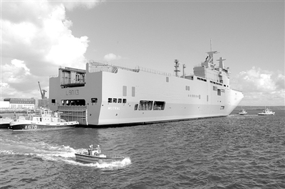 近日,法国外长洛朗·法比尤斯表示,巴黎或因乌克兰和克里米亚局势,重新审议撤销与俄罗斯的“西北风”级直升机航母协议的可能性。俄法于2011年签署协议,由法国为俄罗斯建造两艘“西北风”级直升机航母,并在俄境内建造另外两艘同类型战舰。“西北风”级直升机航母是法国研制的第四代两栖战舰,长199米,宽32米,最大排水量2.1万吨。俄购买该舰是为弥补本国海军两栖作战能力的不足。