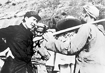 这是毛泽东在延安杨家岭和农民谈话,询问他们的生产和生活情况。新华社发