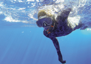 军舰的潜水员在海中执行搜寻任务。新华社发
