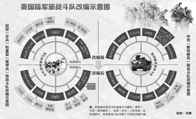 减旅保营,“增牙减尾”。此轮裁减后,美国陆军作战旅将从45个减至33个。然而,单纯从作战旅数量的减少,就得出战斗力将随之下降的论断难免有些轻率。事实上,由于步兵和装甲旅的机动营数量从2个增至3个,被裁撤12个旅的主要作战力量将被编入保留的33个旅战斗队。以第1骑兵师4旅为例,该旅撤消后,其下辖的2个装甲营将分别编入1旅和3旅,而侦察、监视和目标获取中队将被改编成合成兵种营并编入2旅。裁员后,陆军战斗旅机动营的数量将从98减至95个,只减少3个。在伊拉克和阿富汗战场服役过的美陆军高级将领认为,步兵和装甲旅增加第3个机动营,将显著增强其作战、巡逻和战场防护能力。不难看出,裁撤作战旅意在减少旅一级指挥机关,而非作战实体。正如美国陆军参谋长雷·奥迪尔诺所言:“旅的数量减少,但各旅下辖作战营的数量增加,因此实际上是‘增牙减尾’。”