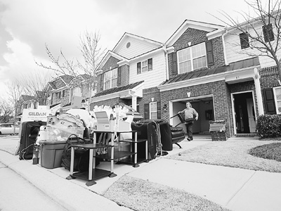 自从美国2008年爆发经济危机以来,很多房主因交不起房贷被没收房产。图为2012年,美国失房者收回被抵押房产,房屋外一片狼藉。