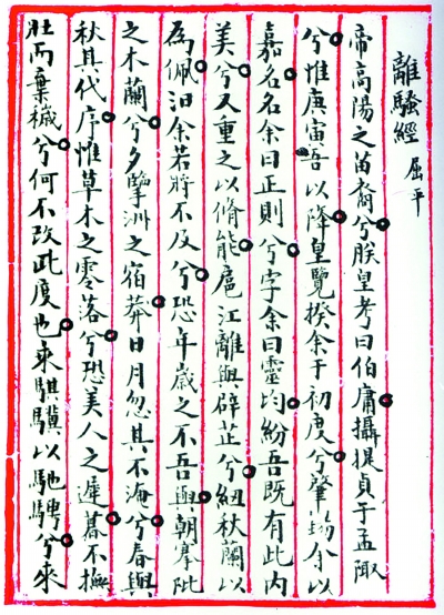 1913年毛泽东抄录的屈原《离骚经》(部分)