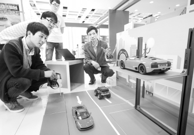上海市民创造发明成果展示会上,发明者在展示“道路架空泊车装置”。 CFP