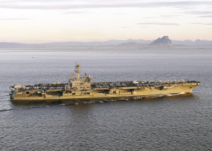 这张美国海军提供的资料照片显示,2014年2月27日,美国海军航母“乔治·H·W·布什”号穿过直布罗陀海峡进入地中海。 新华社/路透