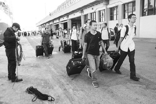 8月2日,从利比亚撤离的中国公民抵达希腊雅典附近的比雷埃夫斯港。