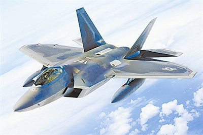 F-22猛禽战斗机是世界上第一种进入服役的第五代战斗机,配备AN/APG-77主动相控阵雷达、响尾蛇近程格斗空对空导弹、AIM-120C中程空对空导弹等。在设计上具备超音速巡航、超视距作战、高机动性、对雷达与红外线隐形等特性。目前是已列装部队的最昂贵的战斗机。