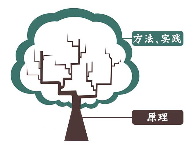 原理是揭示科学规律的。它只讲最基本的、绝不可少的东西,而避免有过多的枝节。正如一棵树,主根主干是万不可少的,至于某枝某叶,长短大小,可以千差万别,决不能以枝叶而定根干。 教条主义者不懂得这一点,王明“左”倾路线就一定要中国走城市起义的路,所以碰得头破血流。反过来,我们也不能要求所有国家的革命都走农村包围城市的路。正如新中国成立初期成功地使用了计划经济但不能几十年下来都是计划经济。此一地彼一地,此一时彼一时。此胜彼败或此败彼胜,都是原理的实践,实践允许有失败,但原理不败,反而在吸取教训中更加发展。因为马克思给出的是共产主义目标,和生产力要与生产关系相适应这些最基本的东西,不管对也好,错也好,都是在它的原理中运行。正如星球运动,无论是圆周说还是椭圆说,都不能改变哥白尼的日心说。老祖宗没有错,错的是我们自己。