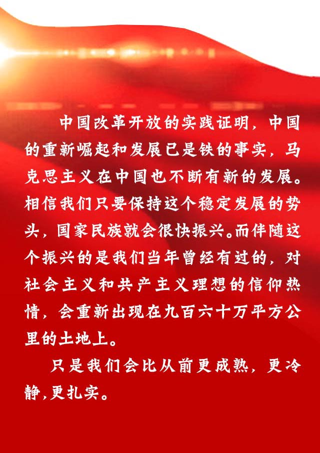 苏联垮台和整个东欧社会主义阵营的巨变,以及我们过去曾长期执行过的与生产力发展不相适应的体制和政策,应该说是社会主义运动中的一场危机。西方敌对势力曾怎样地拍手叫好,希望这场实践的危机就是共产主义原理的危机,希望共产主义的理论和旗帜从此在地球上消失。我们一些好心的同志,也感到了一阵阵的迷茫,以为我们不再搞社会主义和共产主义了,而要搞别的主义,或者干脆就是资本主义。是小平同志从最基本的“什么是社会主义”反思研究起,提出了一整套的有中国特色社会主义理论,使我国社会主义建设迈上了新台阶。这是中国共产党人继毛泽东思想之后对马克思主义原理的第二次伟大贡献。
